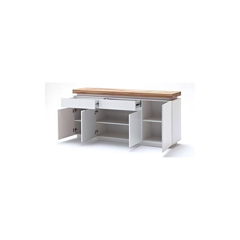 Sideboard-Romina-XL-Asteiche-Massivholz-Oberplatte-Kommode-Schrank-Matt-Lack-Weiss-LED-Beleuchtung 26 Nov.