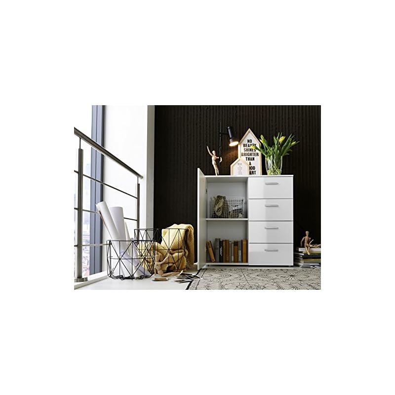 Schubladen-Kommode-Sideboard-Anrichte-MARBELLA-in-Hochglanz-Wei-Hhe-91cm-Breite-88cm-Tiefe-32cm 26 Nov.