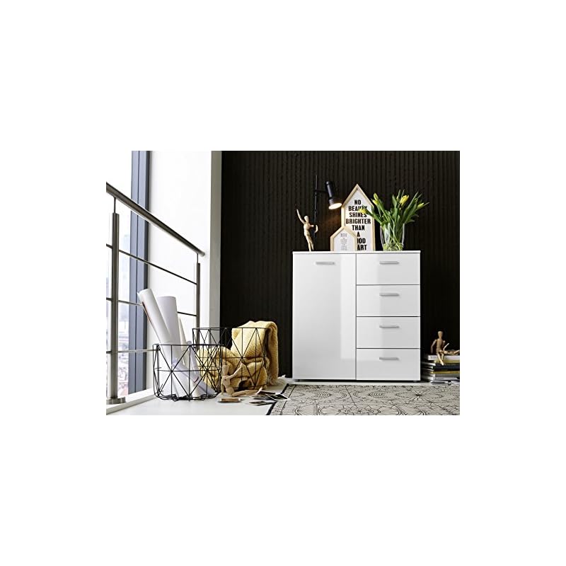 Schubladen-Kommode-Sideboard-Anrichte-MARBELLA-in-Hochglanz-Wei-Hhe-91cm-Breite-88cm-Tiefe-32cm 26 Nov.