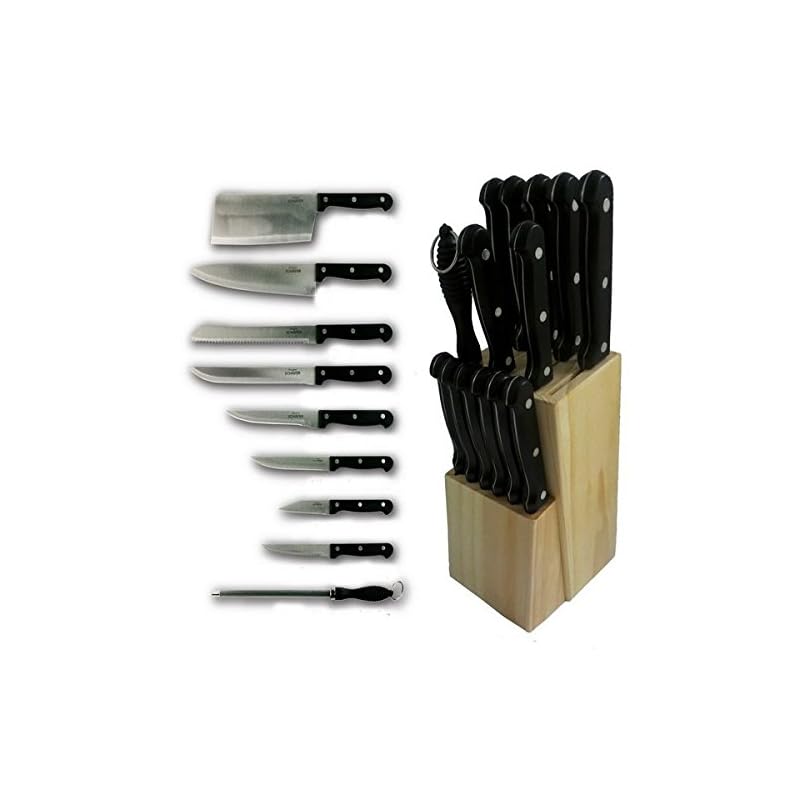Schfer-15-teiliges-Messer-Set-inkl-1-Messerblock-1-Kochmesser-1-Brotmesser-1-Universalmesser-1-Hackbeil-1-Filetiermesser-1-Tranchiermesser-6-Steakmesser-1-Wetzstahl-Natur-Holz 21 Aug.