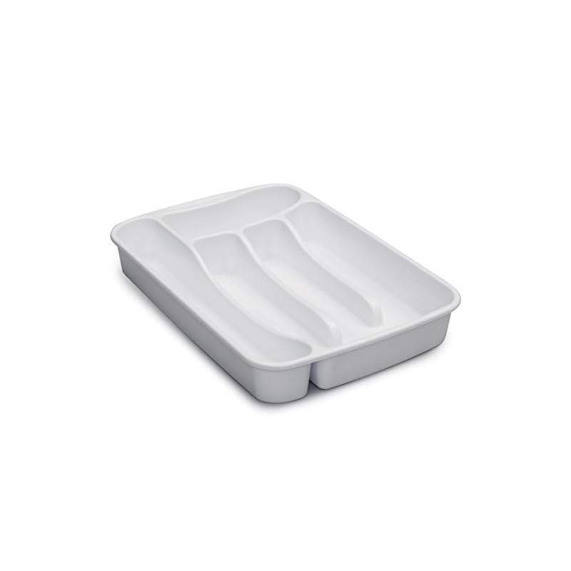 Besteckkasten mit 5 Fächer aus stabilem Kunststoff in weiß: Besteckeinsatz Schubladeneinsatz Besteck Schubkasten