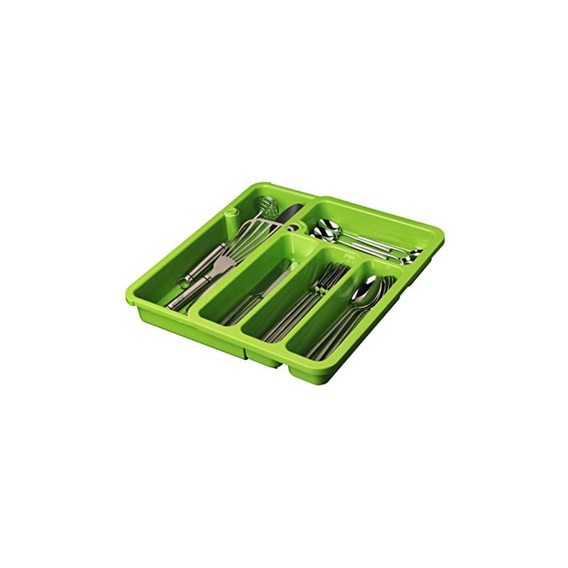 Variabler Besteckkasten ausziehbar für Küche-Schublade. Von ca. 24,5 auf 39 cm auf 4 bis 5 Fächer verstellbar in Grün