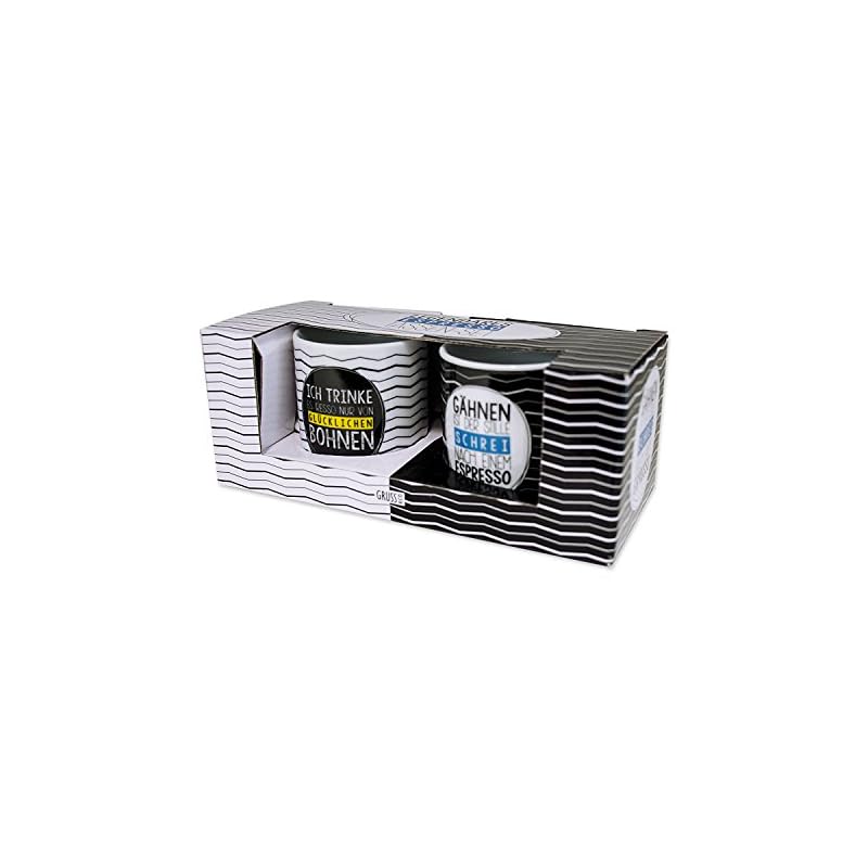GRUSS & CO 43798 Espressotassen-Set: “Ich trinke Espresso nur von glücklichen Bohnen” und “Gähnen ist der stille Schrei nach einem Espresso”, Porzellan
