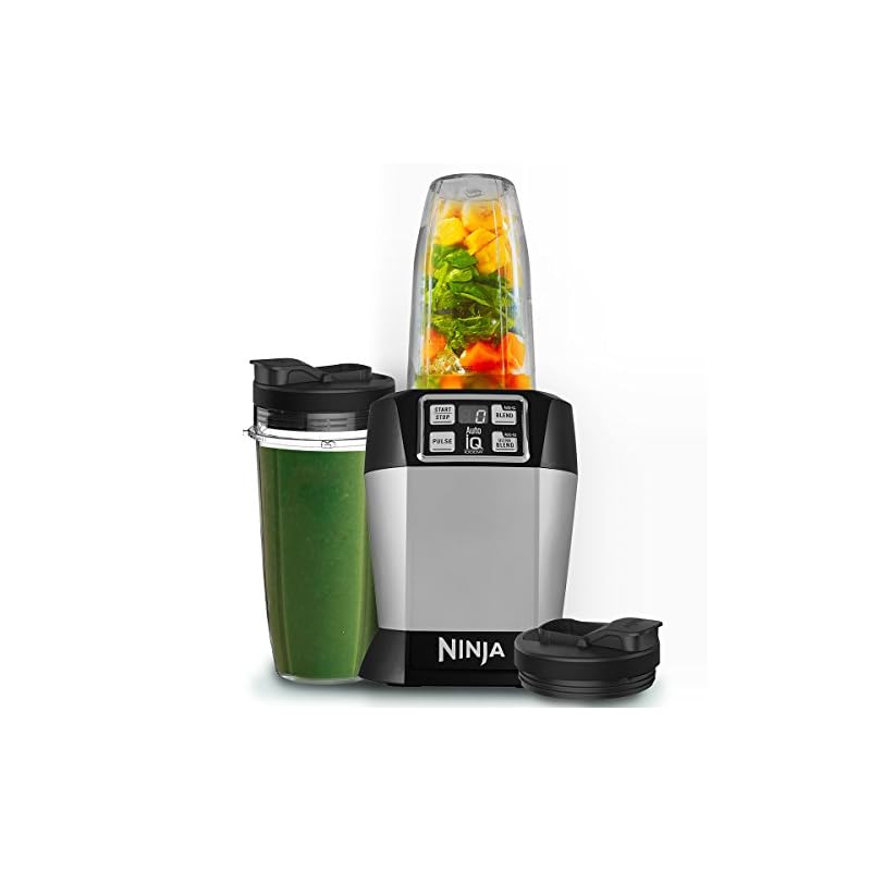 Ninja BL480EU Standmixer Smoothie Maker (1.000Watt, mit Auto-iQ und Pro Extractor Klingen, Nutrition Mixer mit 2 to go Mixbechern und auslaufsicheren Deckeln, Küchenmixer Zerkleinerer) silber/schwarz