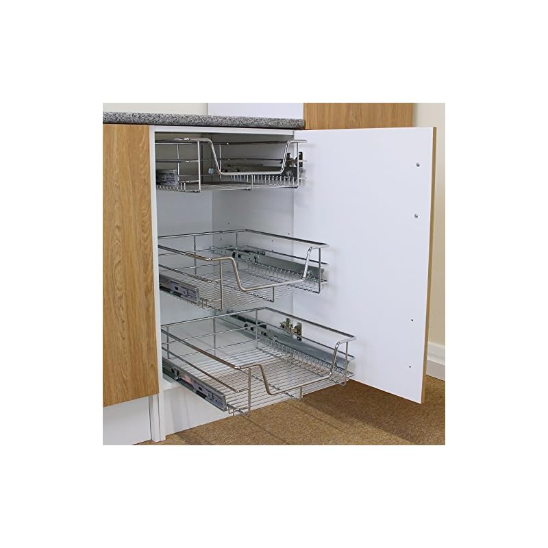 KuKoo – Küchenschublade Schrankkörbe Schrankkorb Schrankauszug Korbauszug Küchenkorb Metallkorb Aufbewahrungskorb Schublade ausziehbar & sanft schließend 60cm