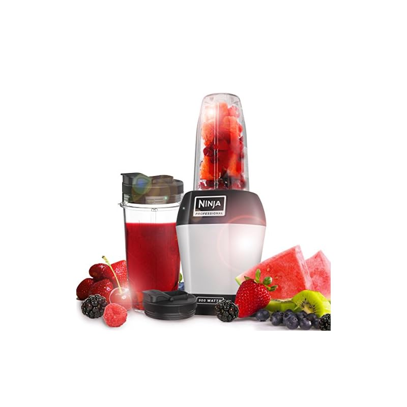Ninja BL450EU Standmixer Smoothie Maker (mit Pro Extractor Klingen, Nutrition Mixer mit 2 to go Mixbechern (650ml, 500ml), auslaufsicheren Deckeln, Küchenmixer Zerkleinerer 900 Watt) silber/schwarz