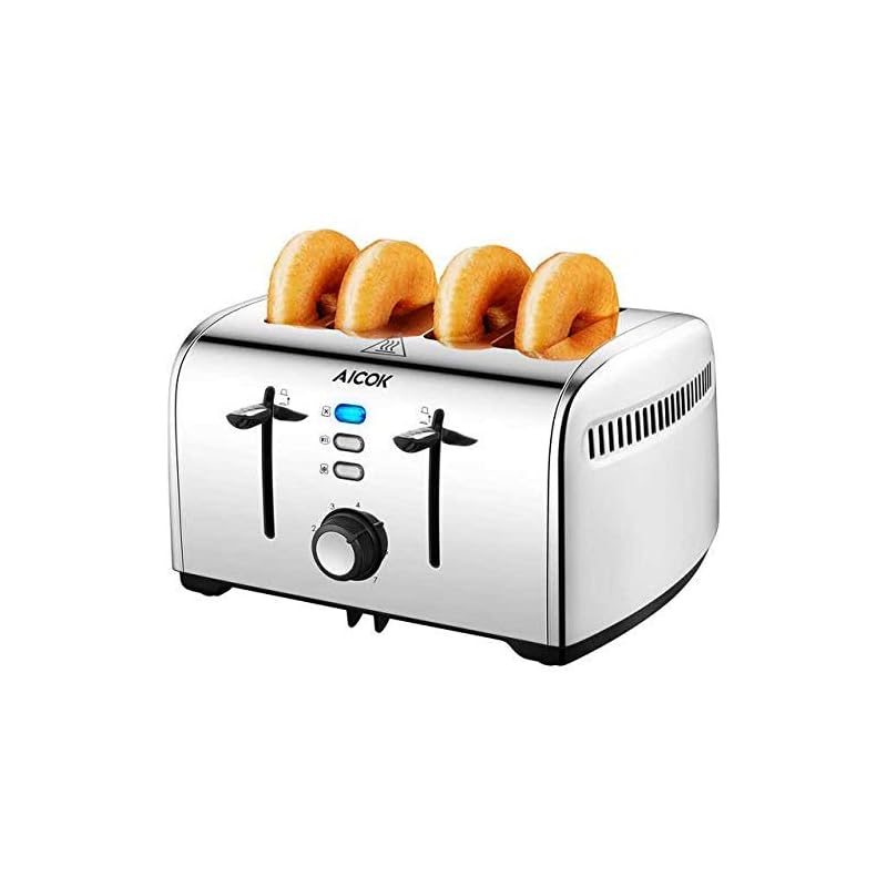 83,24 € inkl. MwSt. zzgl. Versandkosten von Amazon.de / dem HändlerAicok Toaster, 4-Scheiben Edelstahl Toaster mit 7 Brot Browning Einstellungen, abnehmbare Krümelschublade, Bagel/Auftauen/Abbrechen Funktion, schnell Toast Muffins, Waffel, 1400W-1700W, Silber