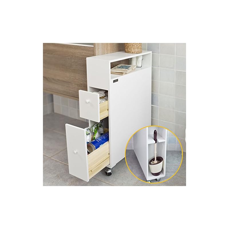 Original price was: 21,36 €.18,16 €Current price is: 18,16 €. inkl. MwSt. zzgl. Versandkosten von Amazon.de / dem HändlerSoBuy® Badregal, Badezimmerschrank,Nischenregal,Nischenwagen, mit 2 Schubladen und Toilettenbürste Halter, eine Gratis-Toilettenbürste, FRG51-W