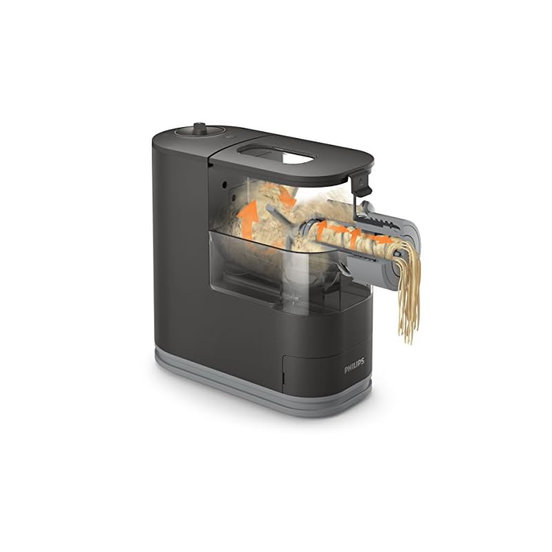 Philips HR2358/12 Pastamaker (200 W, vollautomatische Nudelmaschine, mit Wiegefunktion und 8 Formscheiben) grau/silber