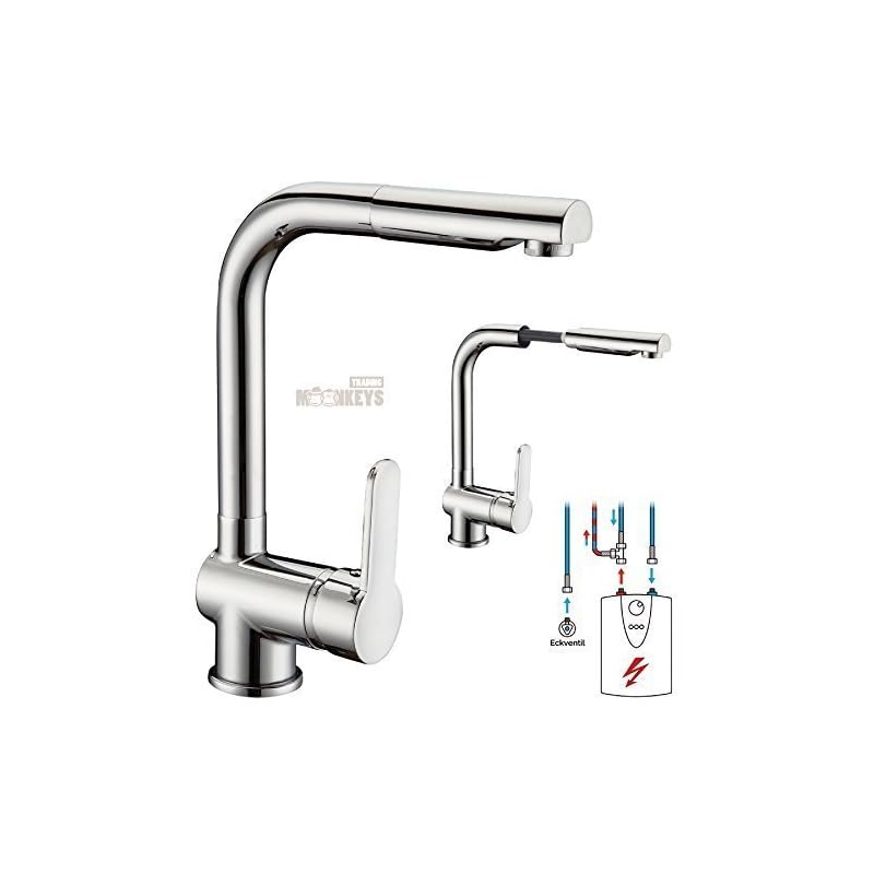 Niederdruck Spültischarmatur mit herausziehbarer Geschirrbrause Wasserhahn Küche Spülbecken Spültisch Armatur Küchenarmaturen Waschtischarmatur Waschbeckenarmatur Einhebelmischer Chom