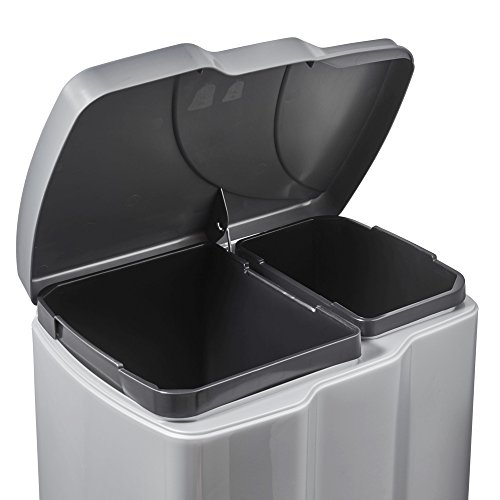 Komfortable Abfallentsorgung: Bequeme Deckelöffnung im Stehen durch Tretfunktion, Einfache Trennung der Abfälle durch zwei unterschiedlich große Abfalleimer