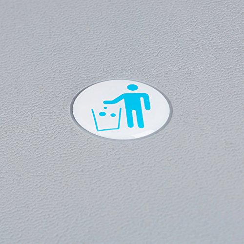 Basics des Abfallsammlers: Maße gesamt H x B x T: ca. 41,8 x 34,2 x 48 cm – Jedweder Kunststoff und Metall – Wiegt rund 5,7 kg – 3 Mistkübel mit 10 bzw. 20 Liter Fassungsvermögen – Farbe: Grau