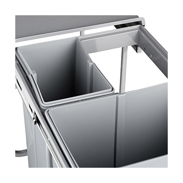Praktisch: Einfach Schranktür öffnen und Abfallsystem per Hand herausziehen – Deckel abebben – Werfen Sie Ihren Gefälle in den Müllbehältern – Ziehen Sie die Mistkübel mithilfe der Henkel heraus