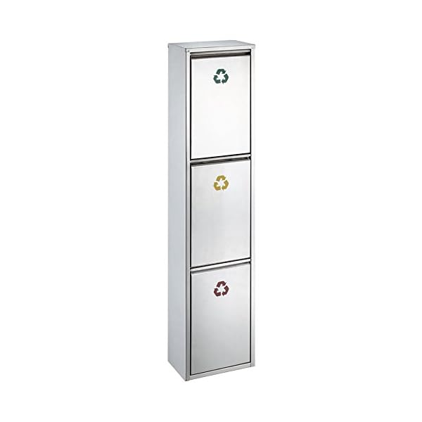 Der Papierkorb besteht aus gebürstetem Edelstahl (satiniert/matt) und ist somit rostfreier. Jede Klappen kann getrennt geöffnet werden.
