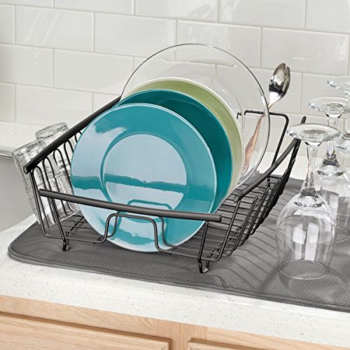Dieses Geschirrabtropfgestell von mDesign bietet mit seinen 11 Steckplätzen, dem Besteckhalter sowie zusätzlichen Haken an den Seiten ausreichend Platz zum Lufttrocknen von Tellern, Schalen, Gläsern, Tassen sowie Besteck.