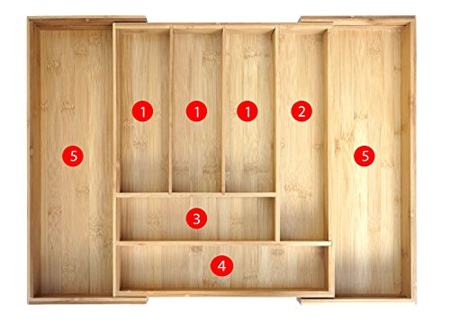 Jetzt kommt von neuem Ordnung in Ihre Schubladen: Dieser vielseitige Schubladeneinsatz dient entweder sämtliche tradiert zur Besteckaufbewahrung, oder alias zum Ordnen von Nähzeug, Schmuck oder anderen Kleinigkeiten. Dank der praktischen Ausziehfunktion ist der Einsatz statt dessen fast jedes Schubladenmaß sinnvoll und kann so je nach Schubladenbreite mit 6 oder 8 Fächern genutzt werden. Demzufolge haben Sie einen flexiblen und gleichzeitig stabilen Ordnungshelfer, den Sie in keiner Schublade mehr missen möchten.