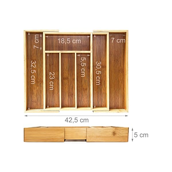 Man zieht die Besteckschublade auf und es kommt einem ein Chaos aus Löffeln, Gabeln und Messern entgegen. Abominabel und völlig unnötig! Verpassen Sie Ihrer Schublade ein Ordnungssystem und bewahren Sie Ihr Besteck fortan in diesem pflegeleichten Besteckkasten aus Bambus auf. Der praktische Organizer ist jederzeit verstellbar, je dieweil wieviel Platz Sie haben und wie viele Fächer Sie benötigen. Möglich sind hierbei 5, 6 oder 7 Fächer.