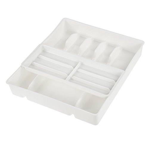 keeeper Besteckkasten mit Schieber 13-Fach, Polypropylen, Weiß, 38 x 42.5 x 7.5 cm