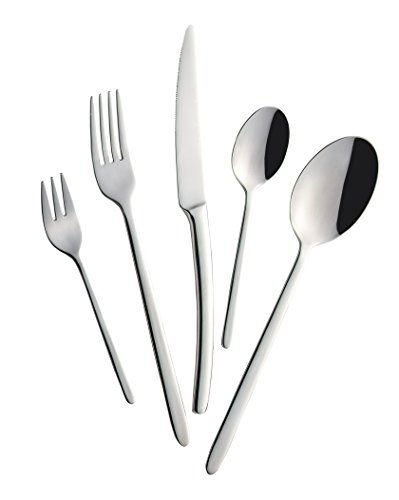 Inhalt: 78-teilig für 12 Personen: je 12 Gabeln, Tafelmesser, Löffel, Kuchengabeln, Tee-/ Kaffeelöffel, 12 Espressolöffel, 1 Salatbesteck (2-teilig), 1 Servierlöffel, 1 Portionsschöpfer, 1 Serviergabel, 1 Tortenheber – Artikelnummer: 1271009992