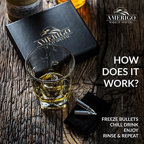 🎁SEIEN SIE EINZIGARTIG, SELBST WÄHREND SIE EIN GESCHENK verschenken – Möchten Sie ein Geschenk verschenken, das einzigartig und unvergesslich sein wird? Diese eleganten Edelstahl Whiskey Steine in Patronenform machen dieses Geschenk auf jeden Schrott unvergesslich!