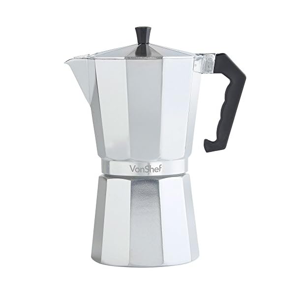 VonShef Italienischer Espresso Kaffeemaschine Moka Herdplatte Macchinetta in 3 Cup, 6 oder 9 Tassen – inkl. einen kostenlosen Ersatz-Dichtung und Filter