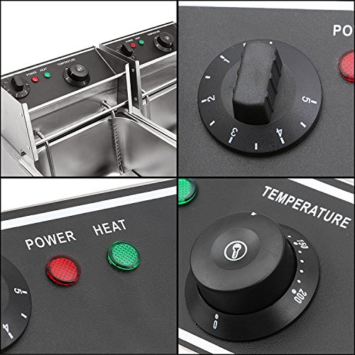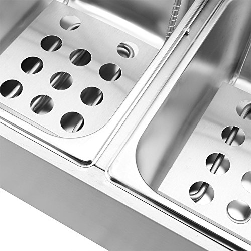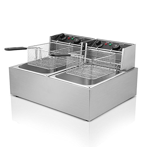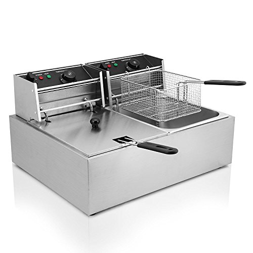 Tatayang 2500W Kommerzielle Elektrische Fritteuse, Edelstahl Doppel Töpfe Kaltzonen Friteuse mit Abnehmbarem Deckel, Silber (10L)