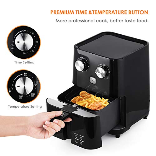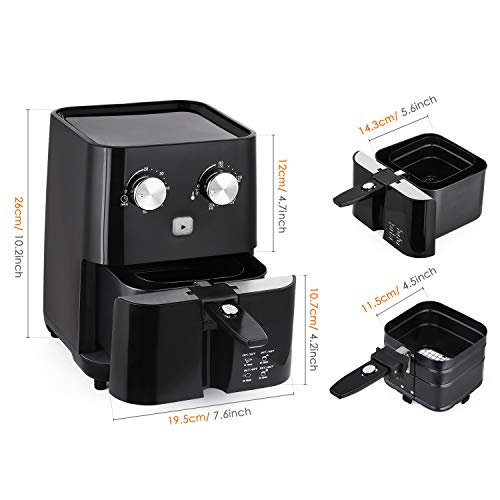 Amzdeal Heißluftfritteuse – Multifunktionale Fritteuse mit Einstellbare Temperatur & Timer, 3D Umluftsystem und Kurze Aufheizzeit Regelbares Thermostat 80°-200°, schwarz