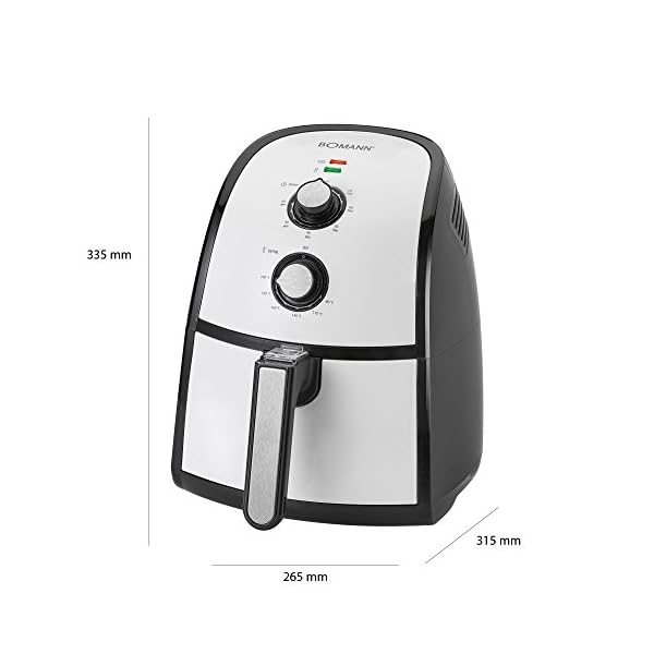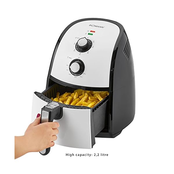 Bomann FR 2301 H CB Heißluft-Fritteuse 2,2 L Fassungsvermögen, stufenlos regelbarer Thermostat, Timer, 1500 W, schwarz/weiß
