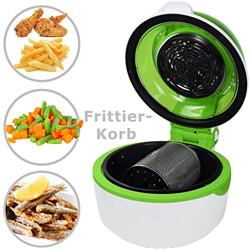 Die formschöne Heißluftfritteuse im Kuppeldesign von Syntrox Germany kommt ohne Öl und Frittierfett jeglicher. Sie arbeitet mit Heißluft. Das Anlage ist ein kleines Multitalent, welches Erhitzen, Garen, Frittieren, Backen, Braten, Grillen kann. Aka das Auftauen von Speisen ist mit dem Airfryer vielleicht.