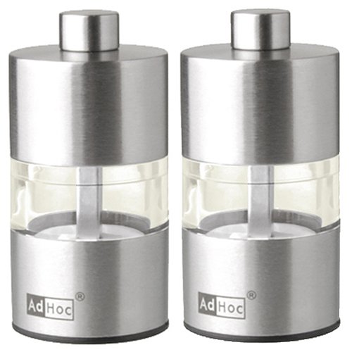 Eine der kleinsten Pfeffer- oder Salzmühlen der Welt in Edelstahl / Acryl per Feineinstellmechanismus.