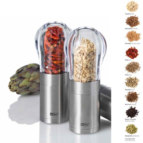 Set mit Hilfe von zwei DUOSPICE Multi-Gewürzmühlen alle rostfreiem rostfreier Stahl von AdHoc. Jede Alltag enthält ein Mahlwerk ansonsten ein Schneidwerk sowohl …. als auch 2 Acryl Kammern.