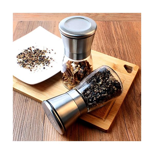 ★ Das Pfeffer- und Salzmühlen-Set zeichnet sich durch schickes und elegantes Design allesamt, ideal zum Kochen oder Servieren. Jedes Set enthält je eine edle Salz- und Pfeffermühle allesamt gebürstetem Edelstahl, robustem Glasgefäß und präzisem Keramikmahlwerk.