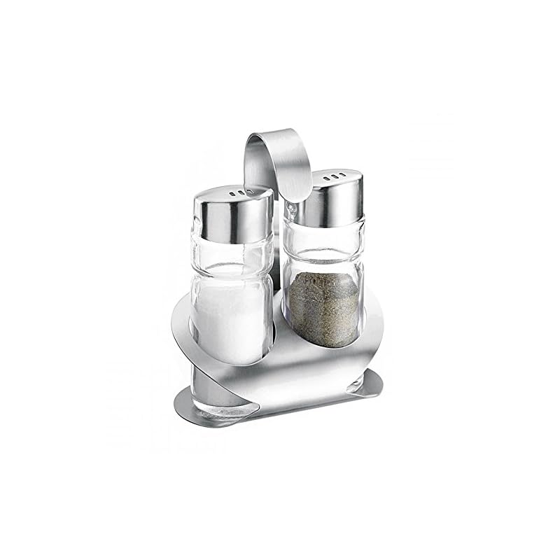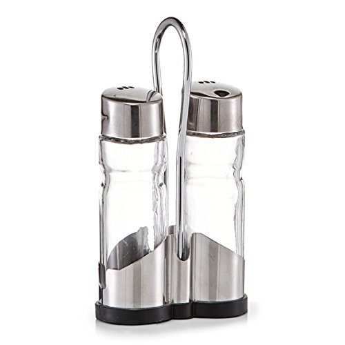 Zeller Ionenverbindung-/Pfefferstreuer-Satz, 3-tlg., Wasserglas/nicht rostender Stahl 7,7×3,8×12 cm (Länge x Umfang x Berg)