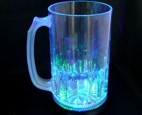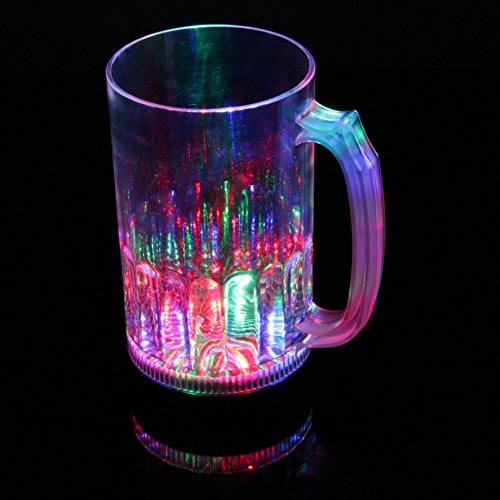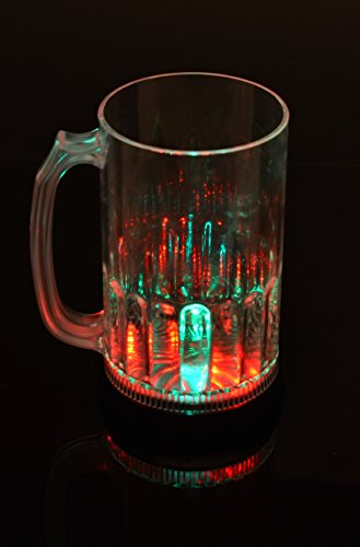 Der Leuchtkrug besteht aufgebraucht transparentem Kunststoff und hat ein Fassungsvermögen von 800 ml. An der Unterseite des Bierkruges befindet sich die Beleuchtung (6 LED: 2x rot, 2x grün, 2x trunken) und ein Schalter, mit dem Sie den Krug ein- bzw. ausmachen können. Farbe: multicolor (rot, grün, trunken) Das Glas verfügt über 3 verschiedene Blinkmodi: bunt leuchtend, nach und nach blinkend, schnell blinkend (per Knopfdruck einstellbar)Größe: Höhe 16,7 cm, Durchmesser 9,3 cm Fassungsvermögen: 800 ml