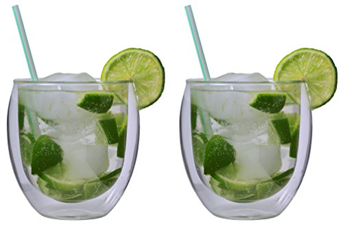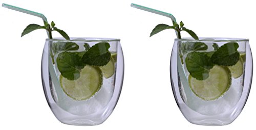 * 2er-Set Jumbo 410ml (randvoll) doppelwandige Thermogläser für Latte Macchiato, Cocktails, Cappuchino, Vorspeise, Eis, Kaffee, Tee, Eistee, Dekogläser – Maße ca. 100-105 D x 105-110mm H