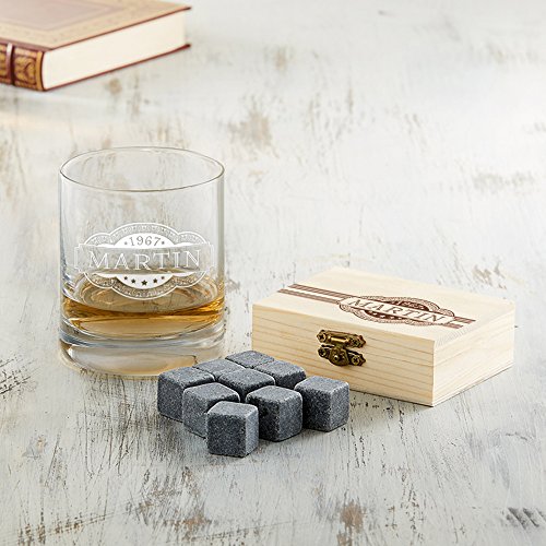 AMAVEL Whiskysteine in Edler Holzbox und Whiskyglas mit Gravur Banderole, Personalisiert mit Namen und Datum,Wiederverwendbare Kühlsteine für Whisky günstig kaufen von AMAVEL für Ihre Küche und Ihren Haushalt günstig kaufen
