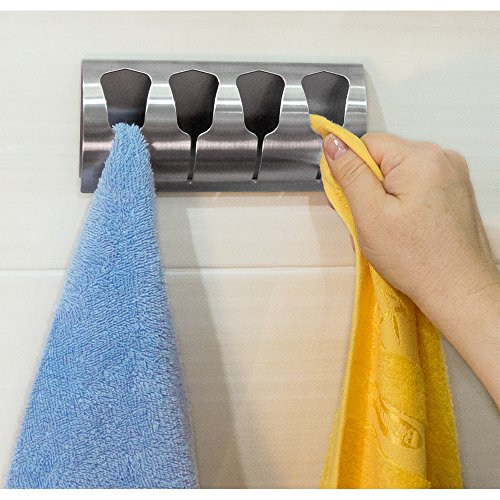 Tatkraft Florida 4 Handtuchklemmen Handtuchklemmleiste Bad und Küche Stark Selbstklebend Edelstahl