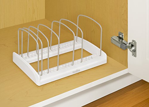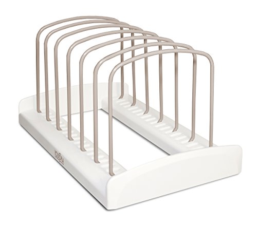Mit dem StoreMore Backformregal ackern Sie in Ihrem Küchenschrank im Handumdrehen Ordnung. Backbleche, Muffin-Arrangieren, Schneidbretter und mehr lassen sich platzsparend aufrecht aufbewahren. So können Sie beständig leicht herausziehen, was Sie benötigen. Die Durchsieben Trennhalterungen sind wahllos verstellbar und können Ihren Bedürfnissen abgestimmt werden. Sie sind ganz beschichtetem Stahl und verkratzen Ihre Backformen nicht. Abzweigung rutschfeste Füße halten die Gesamtheit am Platz und es ist keine Montage oder Installation erforderlich.