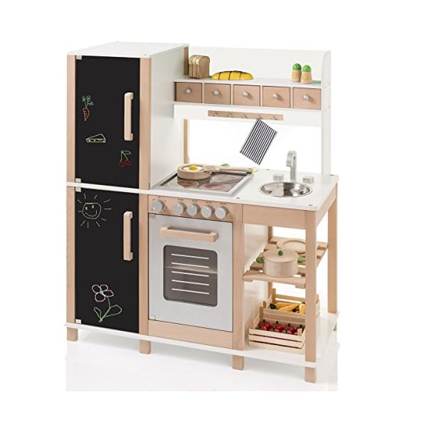• Inklusive großer Kreidetafel am Kühlschrank • Knöpfe erschaffen Klick-Geräusche beim Umwenden • 4 Herdplatten • Das Spüle herausnehmbar • Gezügelt-Gefrierkombination über abundant Stauraum