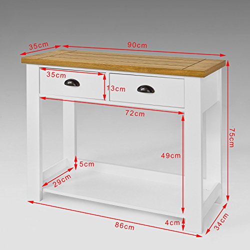 Material: MDF, lackiert; Gewicht: ca. 23 KG,Belastbarkeit: 50 KG; Maße: B90xT35xH75cm