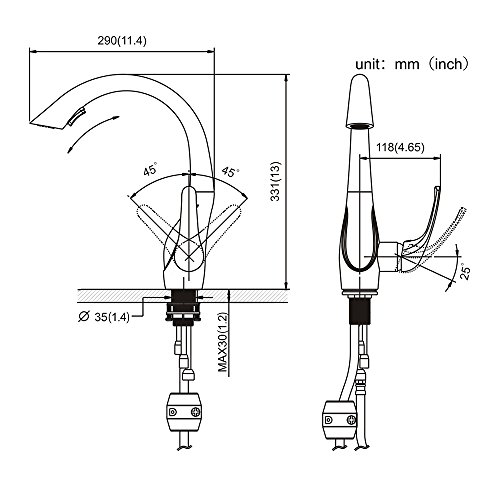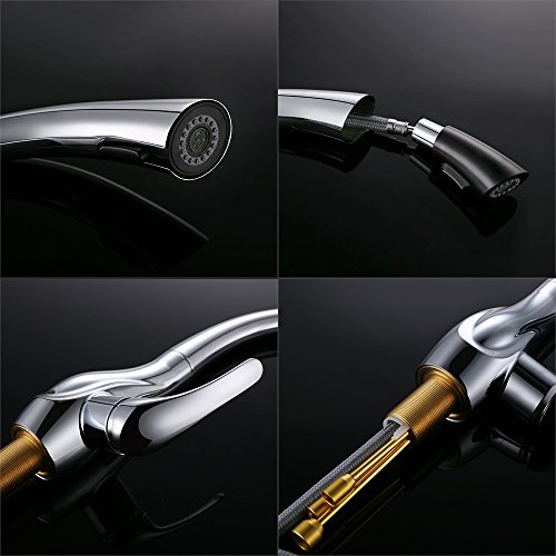 1.Mit ausziehbarer Brause Durch ihre 2 Strahlfunktionen und den ausziehbaren Schlauch ist diese Armatur ein praktischer und schicker Handlanger in Ihrer Küche. können Sie einfacher zu Ihre Spültisch reinigen können Sie Ausspülen Sie Ihre Haare und Gesicht