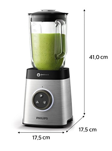 Philips HR3655/00 Standmixer (1400 Watt, ProBlend 6 3D Technologie, 2 Liter Glasbehälter, 2x Trinkbecher, Spülmaschinenfest) edelstahl