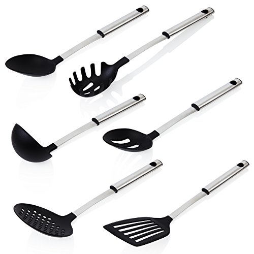 Das praktische 6-teilige Küchenhelfer Set von Lumaland Cuisine enthält jeweils eine/einen: Schaumlöffel bzw. Schaumkelle ✅ Pfannenwender ✅ Suppenkelle ✅ Spaghettiheber ✅ Abschöpflöffel ✅ Löffel ✅ – die perfekte Ergänzung beim Kochen oder Backen zu all Ihren Küchengeräten (z.B. zum Topf oder zur Pfanne)