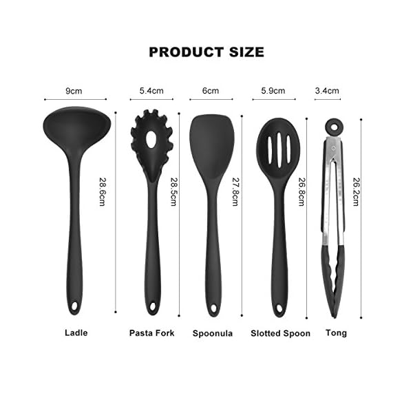 Küchenhelfer Set – Swify 10 Stück Premium Silikon Küchen Utensilien Set -Food Clip, Whisk, Small Brush, Large Scraper, Small Scraper, Leakage Spoon, Lowder Grasping, Butter Scraper, Spatula, Spoon (schwarz2)