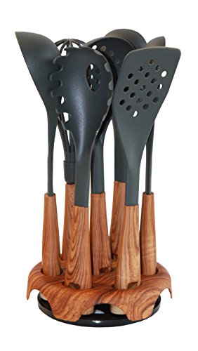 8-teiliges Set bestehend sämtliche: 1 Suppenkelle, 1 Löffel, 1 Servierlöffel, 1 Spatel, 1 Spaghetti-Servierlöffel, 1 Schaumlöffel, 1 Schneebesen, 1 Halterung