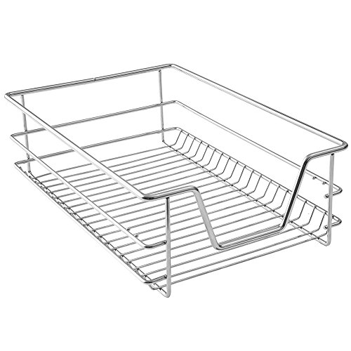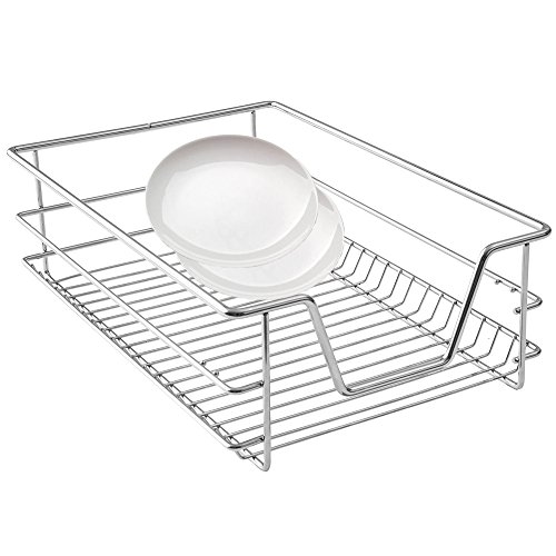Exklusives, platzsparendes Ausziehregal mit niedrigem Profil erleichtert den Zugriff. Beseitigen Sie Unordnung und maximieren Sie den Platz in schwer zugänglichen Schränken und unter der Spüle.