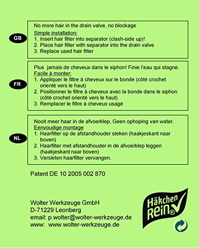Dieser neuartige Haarfilter hält Haare u. a. Kleinteile betriebssicher zurück u. a. wird Frugal ersetzt sobald er trunken ist. Deshalb erübrigt sich ein mühsames Reinigen von verstopften Haarsieben u. a. Abflüssen. Frugal in STANDARD-Abflussventile von Duschen, Badewannen u. a. Waschbecken einlegen. Sondern Abflüsse von MODERNEN Duschen (mit Hilfe von Ventilabdeckung) benutzen Sie bitte den passenden Filter alle unserem Grundstock mit Hilfe von der Amazon-Artikelnummer B00T4UCFBO.