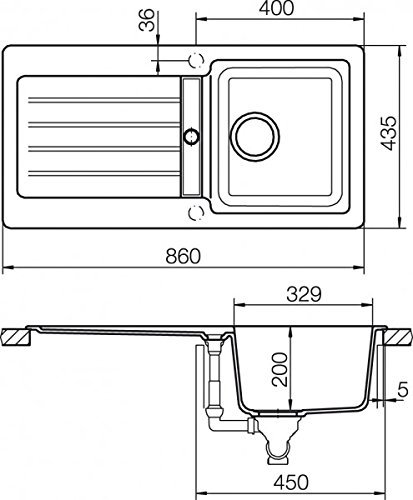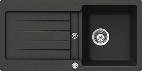 Einbauspüle. Composite, mit Abtropffläche, abänderlich. 3 1/2” Korbventil mit Drehexzentergarnitur, verchromt. Bohrungen müssen vor Ort durchgeschlagen werden.