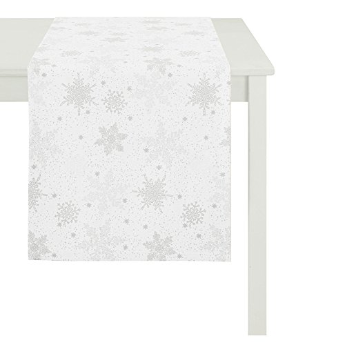 Stilvoller, weihnachtlicher Tischläufer vonseiten Apelt in Jaquard-Beschaffenheit. Per einem edlen, eingewebten Eingabe allesamt Eissternen in Ecru. Gesäumt.