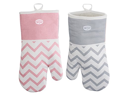 Dr Oetker Back- und Ofenhandschuh, Baumwoll-Handschuh aus der Serie "Modern Baking - Retro Design" (Farbe: Grau, Rosa), Menge: 1 Stück